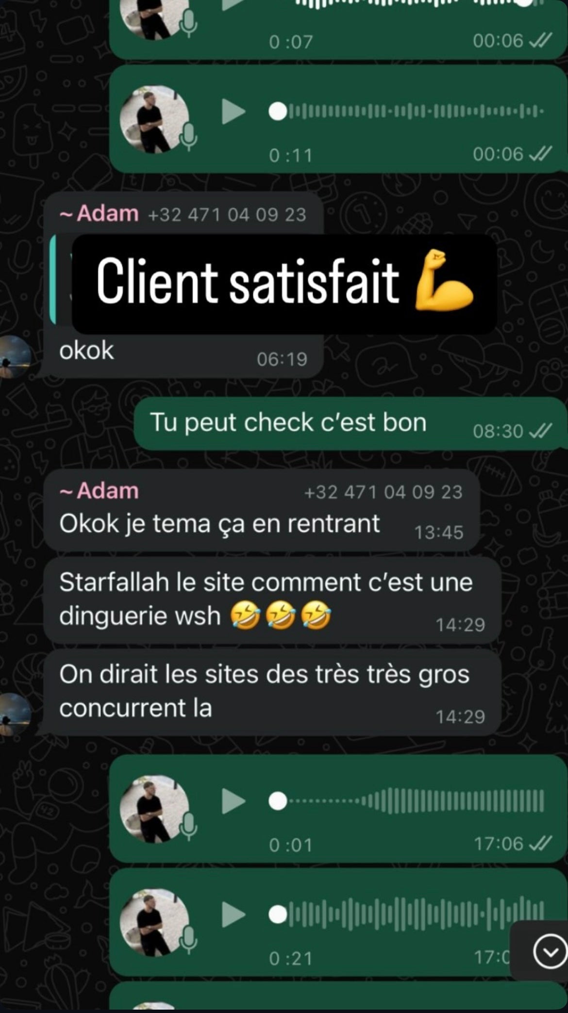 Quelques messages avec nos clients !